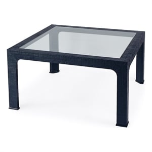 Butler Specialty Company Chatham Glass And Raffia Square Coffee Table - Navy