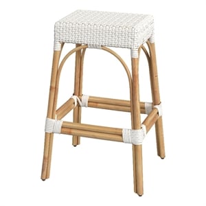 Butler Specialty Company Robias Rectangular Rattan 30" Bar Stool - White & Tan