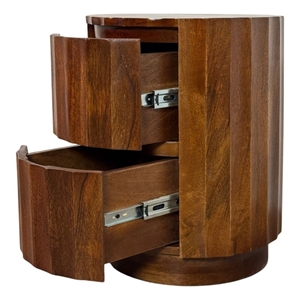 Carolina Harrison Groove 16"x 21" Round Scallop Accent Table in Chestnut