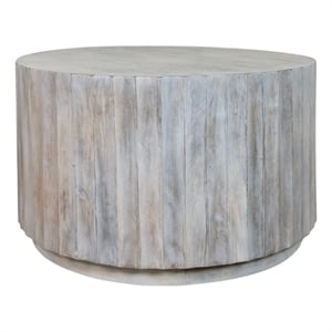 Carolina Harrison Groove 16"x 21" Round Scallop Accent Table in Whitewash