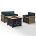 Pemberly Row 5-Piece Patio Fabric Fire Pit Sofa Set in Brown and Navy