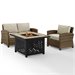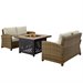 Pemberly Row 3-Piece Metal Patio Fire Pit Sofa Set in Brown/Sand