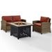 Pemberly Row 3-Piece Patio Fabric Fire Pit Sofa Set in Brown/Red
