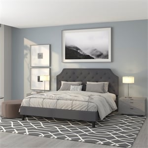 Flash Furniture Brighton Tufted Queen Platform Bed in Dark Gray