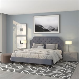 Flash Furniture Brighton Tufted King Platform Bed in Light Gray