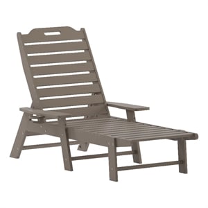 Flash Furniture Newport Plastic Outdoor Lounge Chair with Cup Holder in Gray