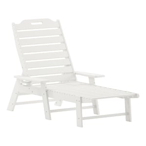 Flash Furniture Newport Plastic Outdoor Lounge Chair with Cup Holder in White