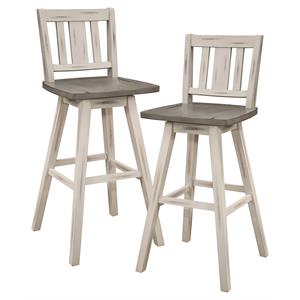 Lexicon Amsonia Slat Back Bar Height Dining Swivel Chair in White (Set of 2)