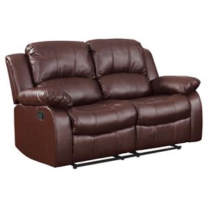 Lexicon Cranley Traditional Faux Leather Double Reclining Loveseat in Brown