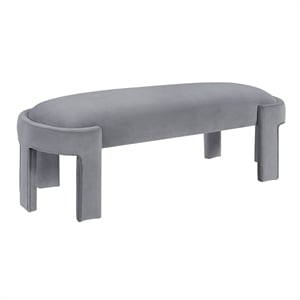 Lexicon Flux Velvet Bench with High-Density Foam Cushioned Seat in Gray