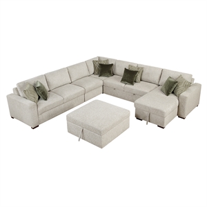 Lexicon Isla Microfiber 4-Piece Sectional with Pull-out Bed in Sage Sand