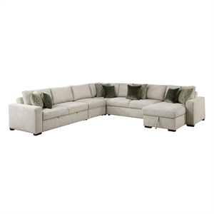 Lexicon Isla Microfiber 6-Piece Sectional with Reversible Chaise in Sage Sand