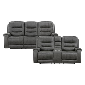 Lexicon Oberon Microfiber Double Reclining Sofa in Dark Gray