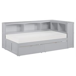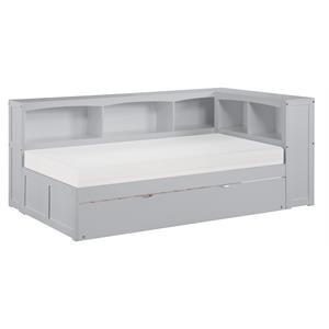 Lexicon Orion 5-Shelf Transitional Wood Twin Bookcase Corner Bed in Gray