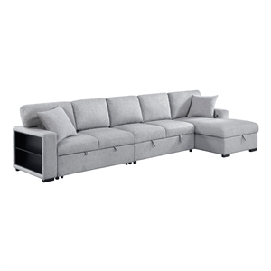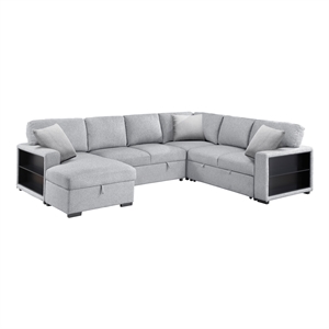 Lexicon Pompano Boucle Sectional with Right Chaise & Pull-out Bed in Gray