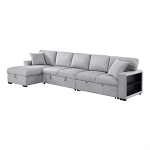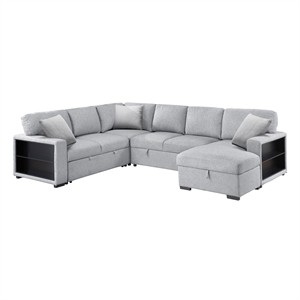 Lexicon Pompano Boucle Sectional with Left Chaise & Pull-out Bed in Gray
