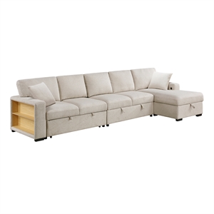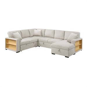 Lexicon Pompano Boucle Sectional with Right Chaise & Pull-out Bed in Beige
