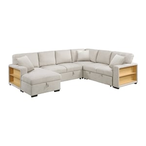Lexicon Pompano Boucle Sectional with Left Chaise & Pull-out Bed in Beige
