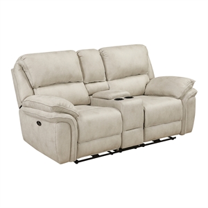 Lexicon Proctor Microfiber Pwr Dbl Reclining Love Seat w/ Center Console in Sand