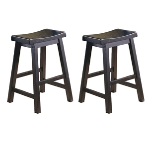 Lexicon Saddleback 24" Solid Wood Counter Stool in Black (Set of 2)