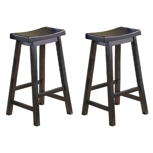 Lexicon Saddleback 29" Solid Wood Bar Stool in Black (Set of 2)