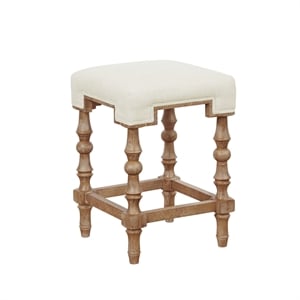 Linon Ashleigh 24" Backless Beige Upholstered Counter Stool in Natural Wood