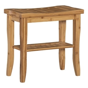 Linon Bracken Sturdy Solid Bamboo Bathroom Stool with Shelf in Natural Brown