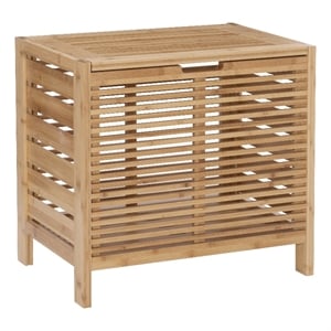 Linon Bracken Sturdy Solid Bamboo Slatted Hamper with Wide Top in Natural Brown