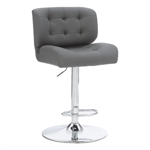 Linon Chaz Metal Chrome ABS Barstool Upholstered Seat in Gray Faux Leather