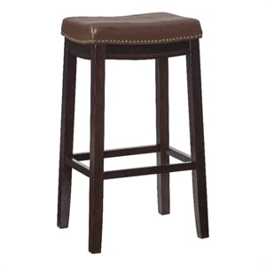 Linon Claridge Wood Set of 2 Bar Stools Brown Faux Leather Seats in Brown Finish