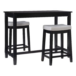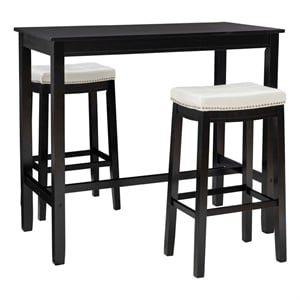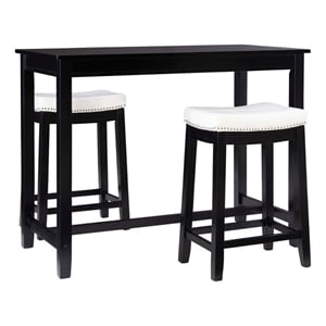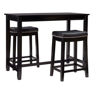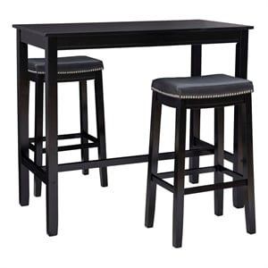 Linon Claridge Three Piece Bar Dining Set Faux Leather Seats in Black Wood