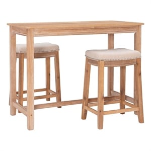 Linon Claridge Three Piece Bar Dining Set Padded Seats in Natural Brown Wood