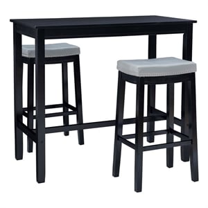Linon Claridge Three Piece Bar Dining Set Gray Faux Leather Seats in Black Wood