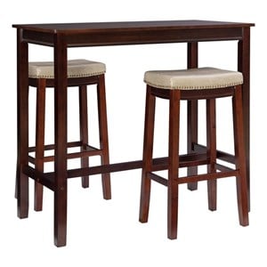 Linon Claridge Three Piece Bar Dining Set Beige Faux Leather Seats in Brown Wood