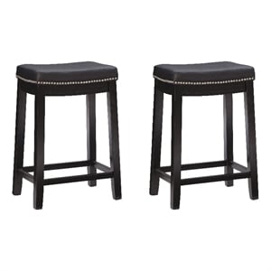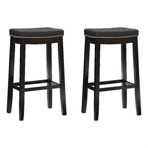 Linon Claridge Wood Set of Two Bar Stools Faux Leather Seats in Black