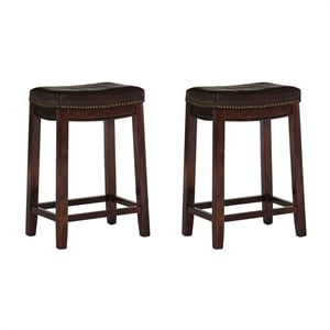 Linon Claridge Set of Two Wooden Counter Stools with Faux Leather Seats in Brown