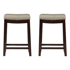 Linon Claridge Wood Set of 2 Counter Stools Beige Faux Leather Seats in Dk Brown