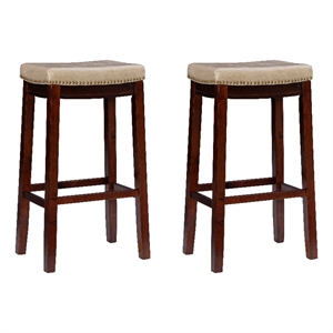Linon Claridge Wood Set of 2 Bar Stools Beige Faux Leather Seats in Brown Finish