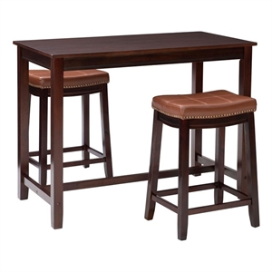 Linon Claridge Three Piece Bar Dining Set Faux Leather Seats in Brown Wood