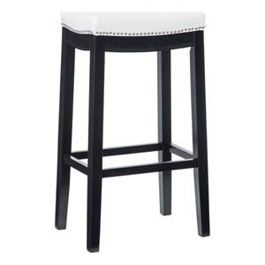 Linon Claridge Backless Bar Stool White Faux Leather Wood Frame in Black Finish