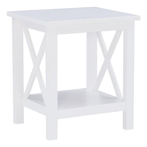 Linon Dalton End Table with Shelf and X Design on Sides in Antique White Wood