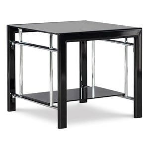 Linon Dart Steel End Table Top and Bottom Glass Shelves in Glossy Black