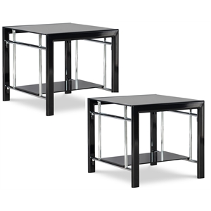 Linon Dart End Table (Set of 2) Top & Bottom Glass Shelves in Glossy Black Steel
