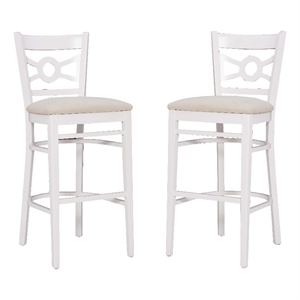 Linon Ederlee Set of Two Barstools Beige Padded Seat Frame in White Solid Wood
