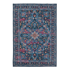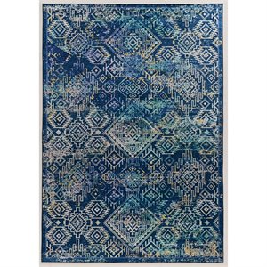 Linon Emerald Duluth Woven Microfiber Polyester 6'7"x9'7" Rug in Navy