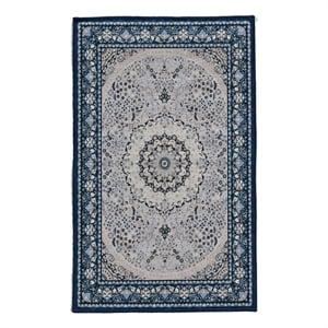 Linon Emerald Grenier Woven Microfiber Polyester 2'2"x3'2" Rug in Navy
