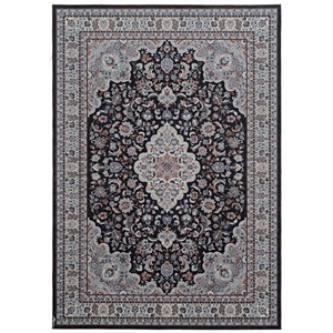 Linon Emerald Barton Woven Microfiber Polyester 6'7" x 9'7" Rug in Black