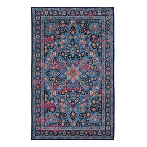 Linon Emerald Duluth Woven Microfiber Polyester 2'2"x3'2" Rug in Navy