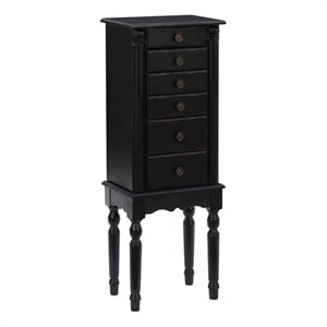 Linon Esther Distressed Wood Jewelry Armoire in Ebony Black