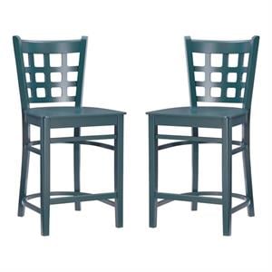 Linon Flint Commercial Grade Set of 2 Lattice Back Counter Stools in Green Wood